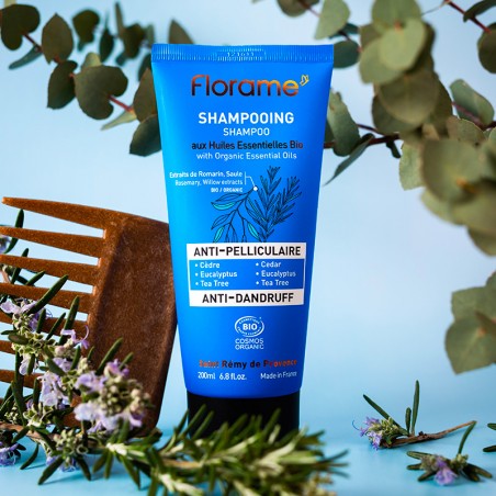 Formulated without sulfate1, Florame Anti-Dandruff Shampoo is enriched with organic Cedar, Tea Tree and Eucalyptus essential oils, known for their rebalancing properties, as well as organic Rosemary and Willow herbal extracts known for their purifying virtues.