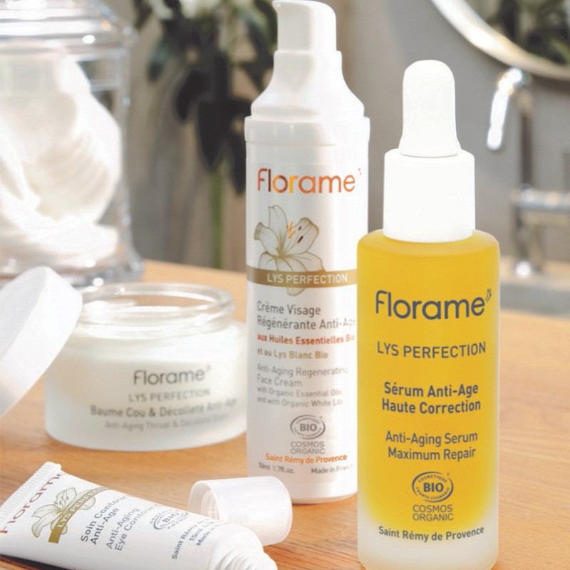 Fruit de la recherche Florame, la gamme anti-âge LYS PERFECTION puise sa force dans l’association inédite d’un extrait de Lys Blanc bio et d’un acide hyaluronique de bas poids moléculaire, reconnue pour son effet tenseur et ses propriétés hydratantes et tonifiantes.
